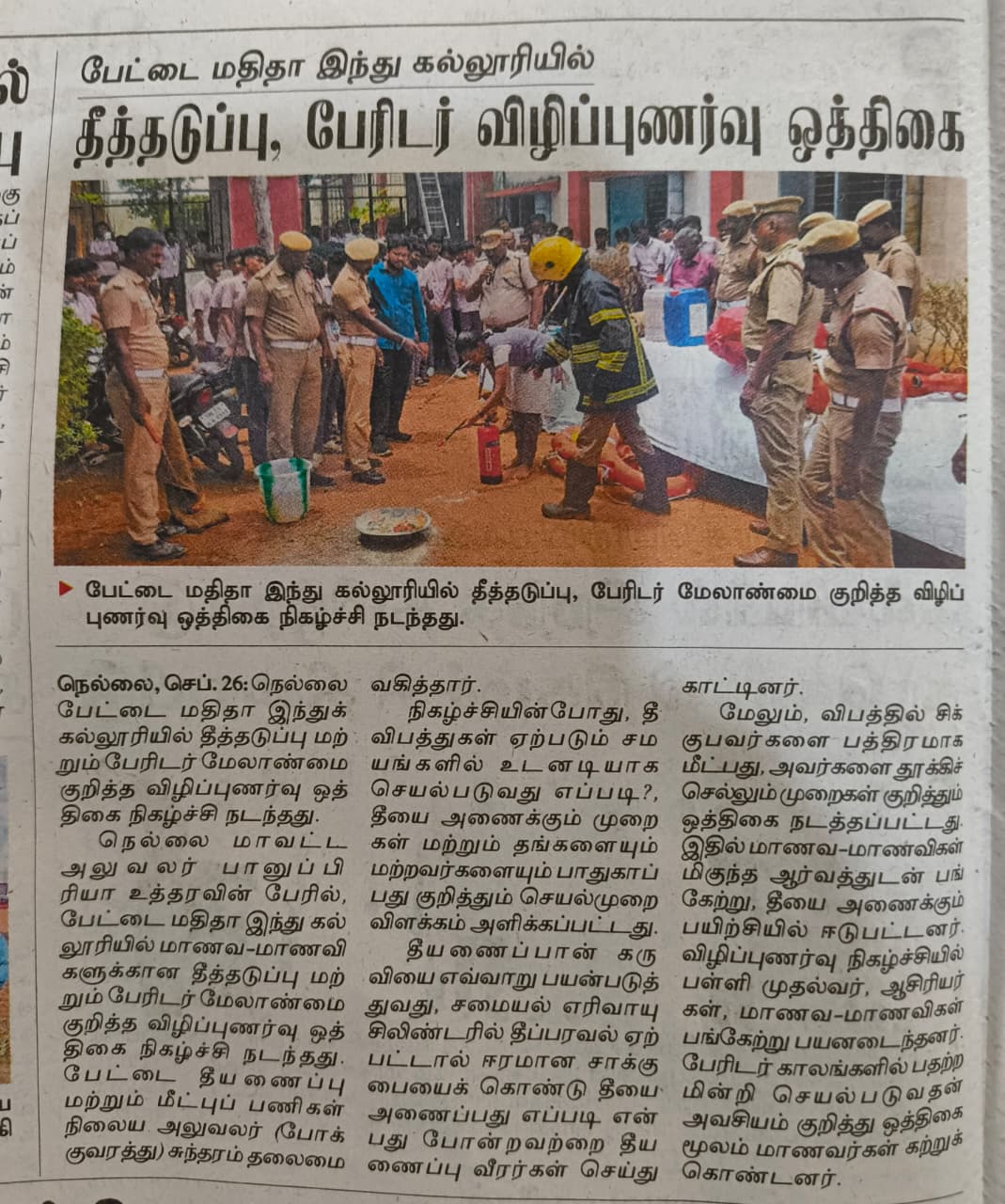 Awareness Program on Fire Safety and Disaster Management on 24.09.25 by Mr. Sundaram Fire and Rescue Officer, Fire and Rescue station, Pettai.