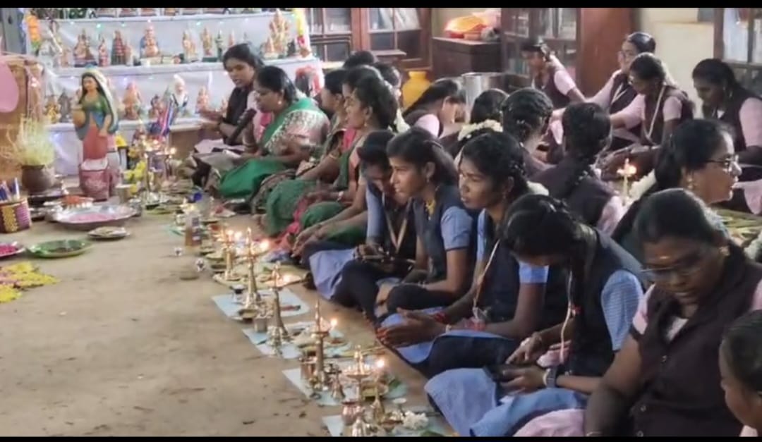 "On the second day, the Chemistry Department conducted a special pooja ceremony. On the third day, the Mathematics Department performed a pooja ceremony. On the fourth day, the Commerce and Computer Science Departments jointly organized a ceremony with over 300 students participating.