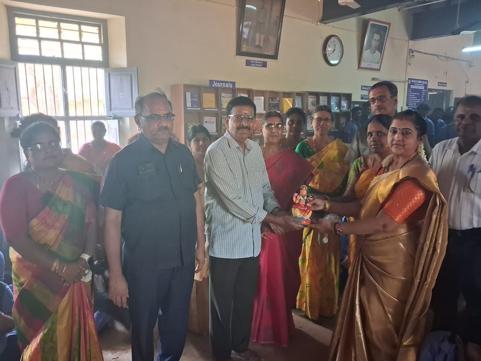 On the eighth day, the Economics Department conducted a special pooja ceremony. On the ninth day, the Physical Education Department made arrangements for the ninth-day pooja ceremony. Every year we got appreciation and shields from various media and organisations.